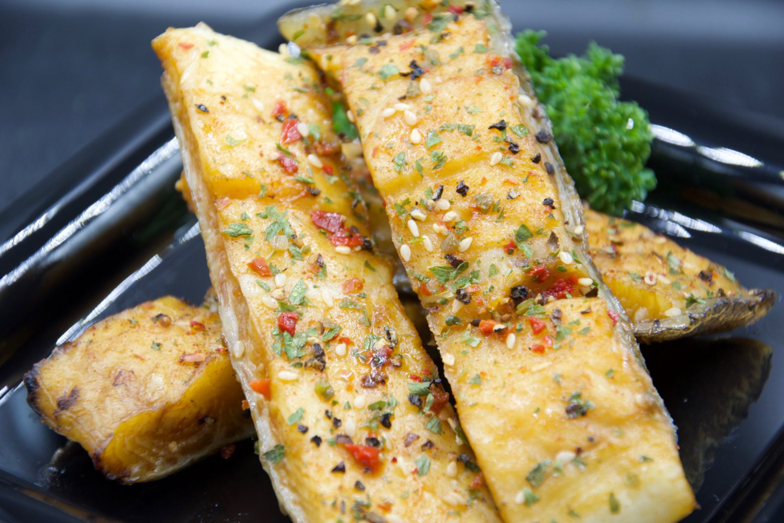 Delicaat warm gerookte heilbot in hapklare stukjes afgewerkt met Italiaanse kruiden.