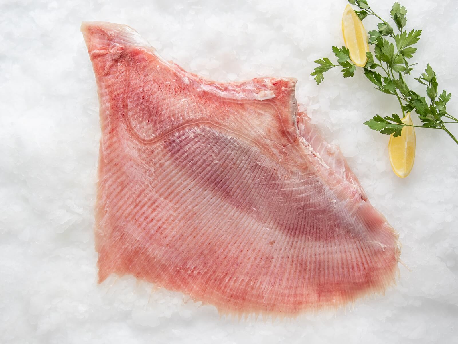 Rog heeft geen graten maar kraakbeen waartussen het visvlees ( in lange, smalle draadjes ) zit.